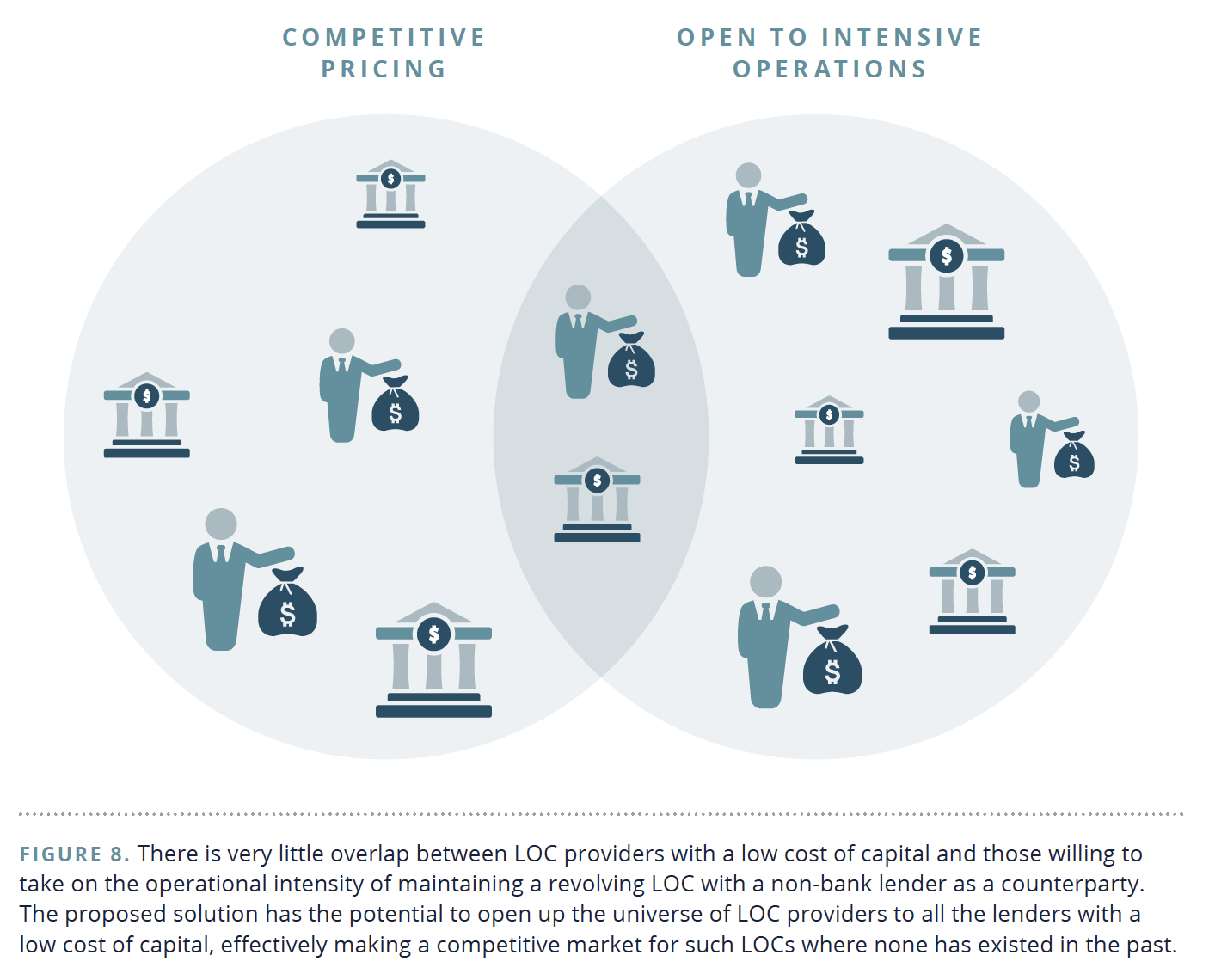 By widening the universe of potential investors in these LOCs, the proposed approach not only reduces cost but should greatly increase the depth of the market. Any bank, insurance company or other fixed income investor able to make illiquid investments becomes a potential provider of structural leverage to non-bank lenders. This will ensure that non-bank lenders are never limited based on their access to super-senior financing.